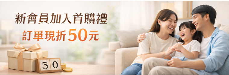 新會員註冊加入領取優惠好禮,新註冊會員將可以領取50元折價券(消費滿300元即可使用)